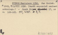 NITSCH Kazimierz 1932 Jan Czubek. 1849, t 15/VII 1932. (Garść wspomnień zamiast nekrologu).