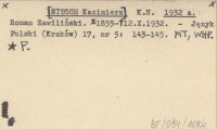 K.N. [NITSCH Kazimierz] 1932 a Roman Zawiliński. *1855-t12.X.1932.