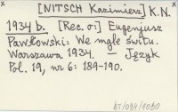 K.N. [NITSCH Kazimierz] 1934 b Eugenjusz Pawłowski: We mgle świtu. Warszawa 1934.
