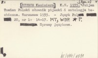 K.N. [NITSCH Kazimierz] 1935 Juljan Tuwim: Polski słownik pijacki i antologja bachiczna. Warszawa 1935.