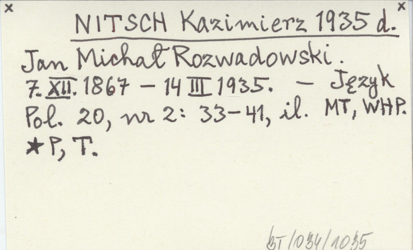 NITSCH Kazimierz 1935 d Jan Michał Rozwadowski. 7.XII.1867 - 14 III 1935.