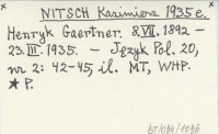 NITSCH Kazimierz 1935 e Henryk Gaerner. 8.VII.1892 - 23.III.1935.
