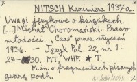 NITSCH Kazimierz 1937 a Uwagi językowe o książkach. [...] Michał Choromański: Prawo młodości. "Czas" przez styczeń 1936.