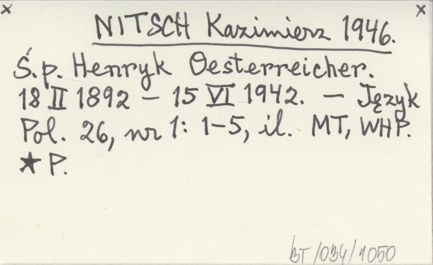 NITSCH Kazimierz 1946 Ś. p. Henryk Oesterreicher. 18 II 1892 - 15 VI 1942.