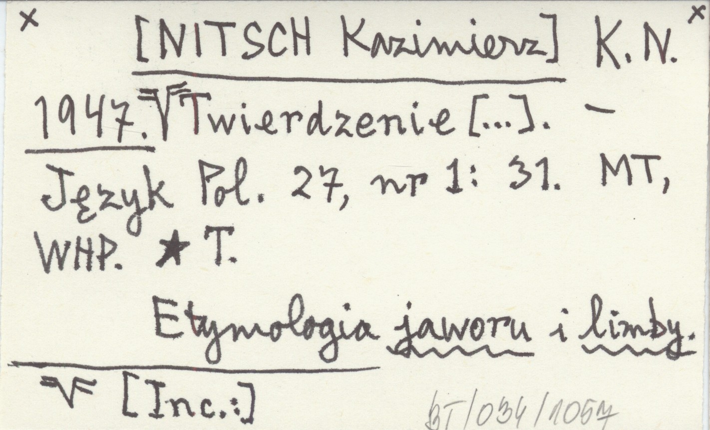 Język Polski, 27, nr 1: 31. [Inc.:] Etymologia jaworu i limby.