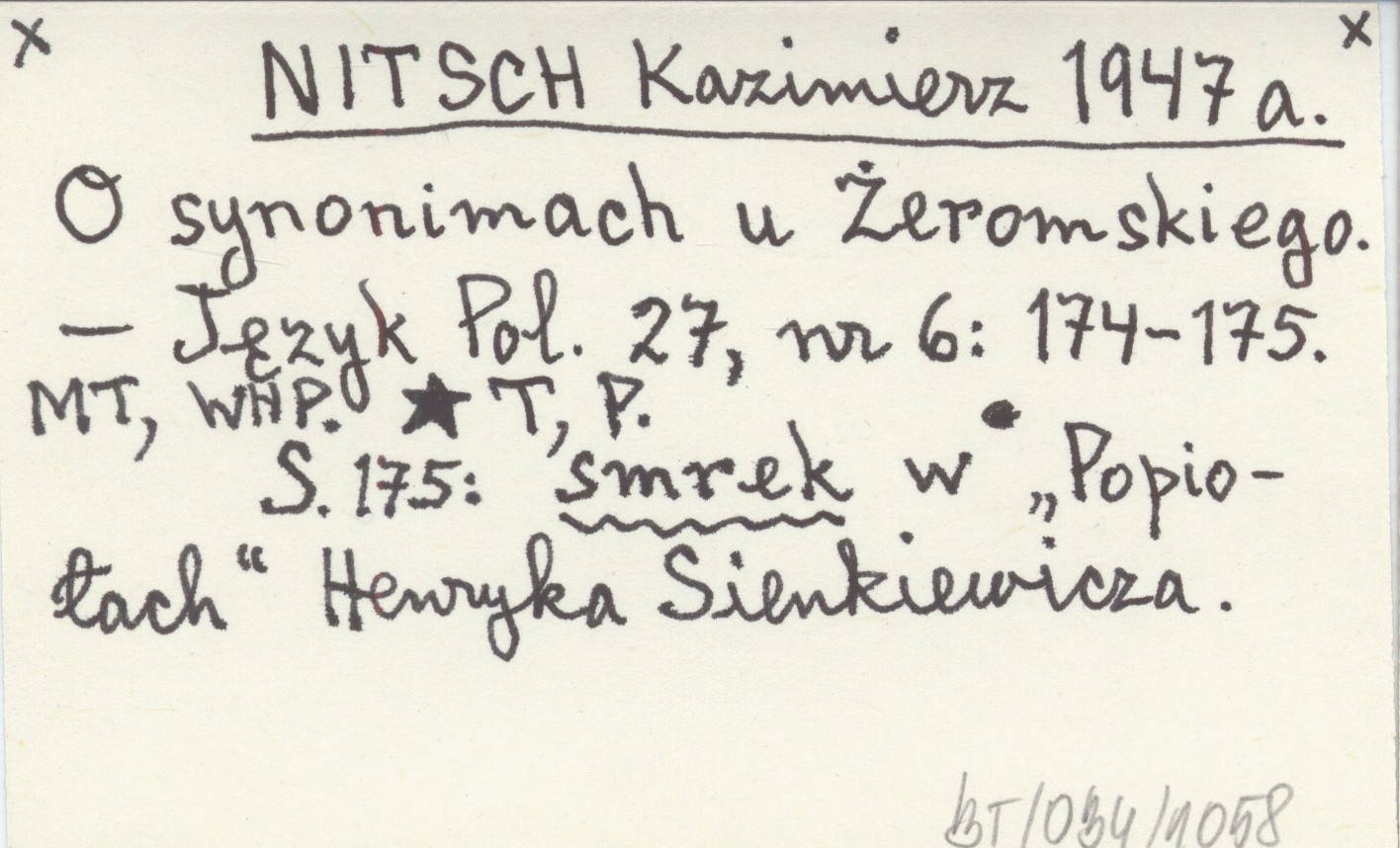 NITSCH Kazimierz 1947 a O synonimach u Żeromskiego.