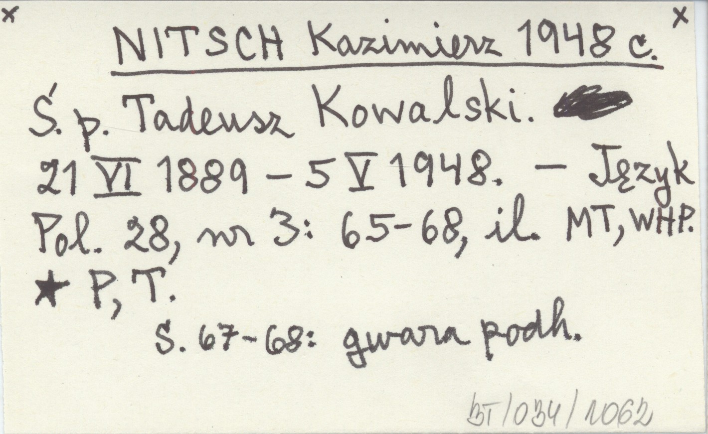 NITSCH Kazimierz 1948 c Ś. p. Tadeusz Kowalski. 21 VI 1889 - 5 V 1948.
