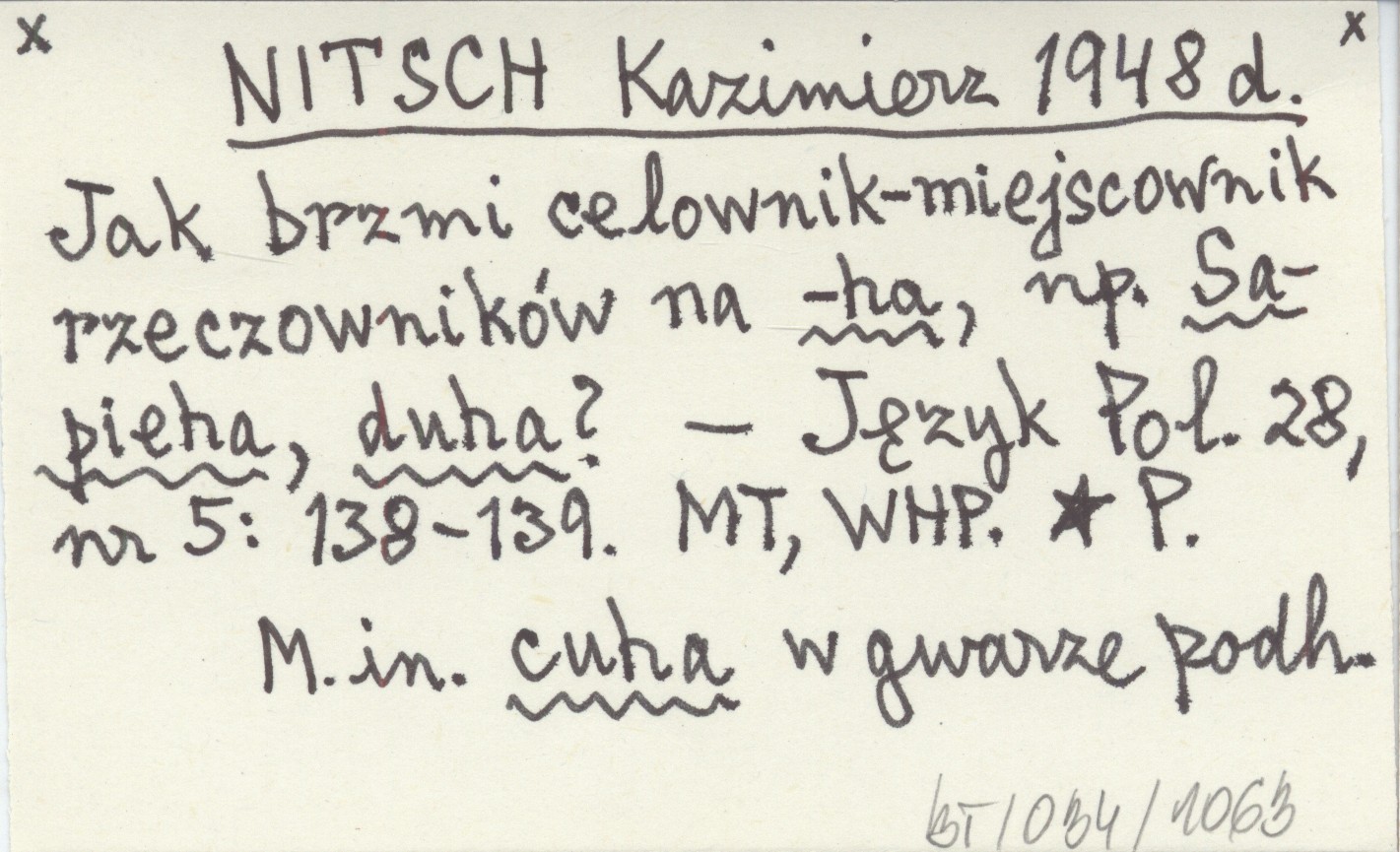 NITSCH Kazimierz 1948 d Jak brzmi celownik-miejscownik rzeczowników na -ha, np. Sapieha, duha?