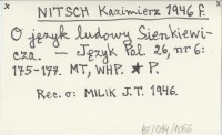 NITSCH Kazimierz 1946 f O język ludowy Sienkiewicza.