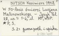 NITSCH Kazimierz 1948 W 50-lecie śmierci Lucjana Malinowskiego.