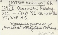 K. N. [NITSCH Kazimierz] 1948 f Odpowiedzi Redakcji. 366.