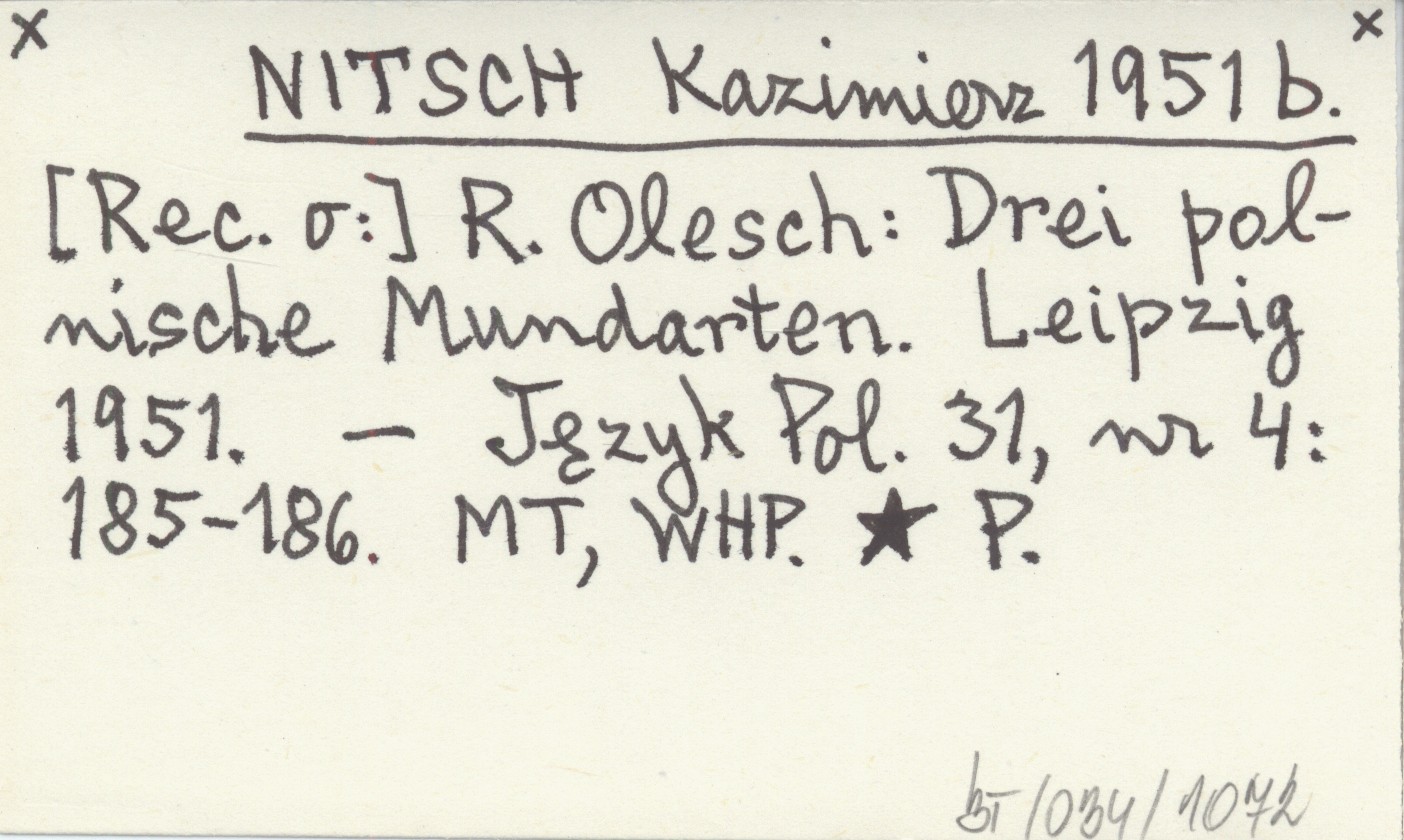 NITSCH Kazimierz 1951 b R. Olesch: Drei polnische Mundartn. Leipzig 1951.