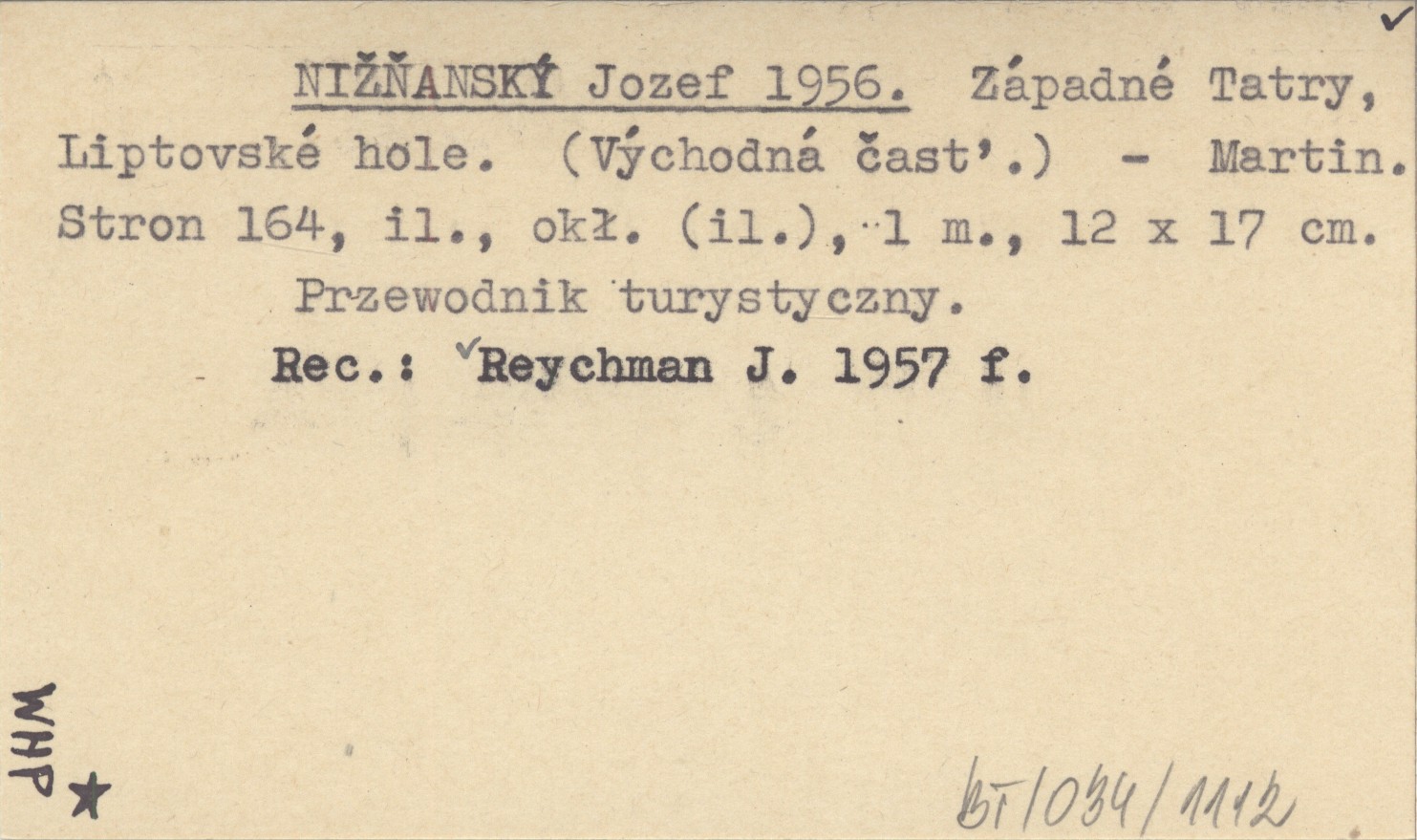 NIŽŇANSKÝ Jozef 1956 Západné Tatry, Liptovské hole. (Východná časť.).