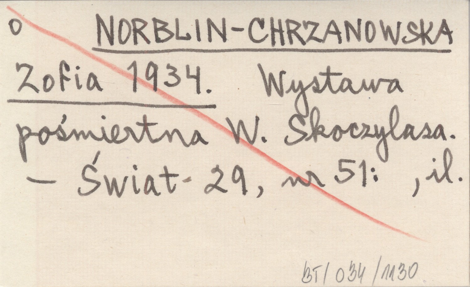 NORBLIN-CHRZANOWSKA Zofia 1934 Wystawa pośmiertna W. Skoczylasa.