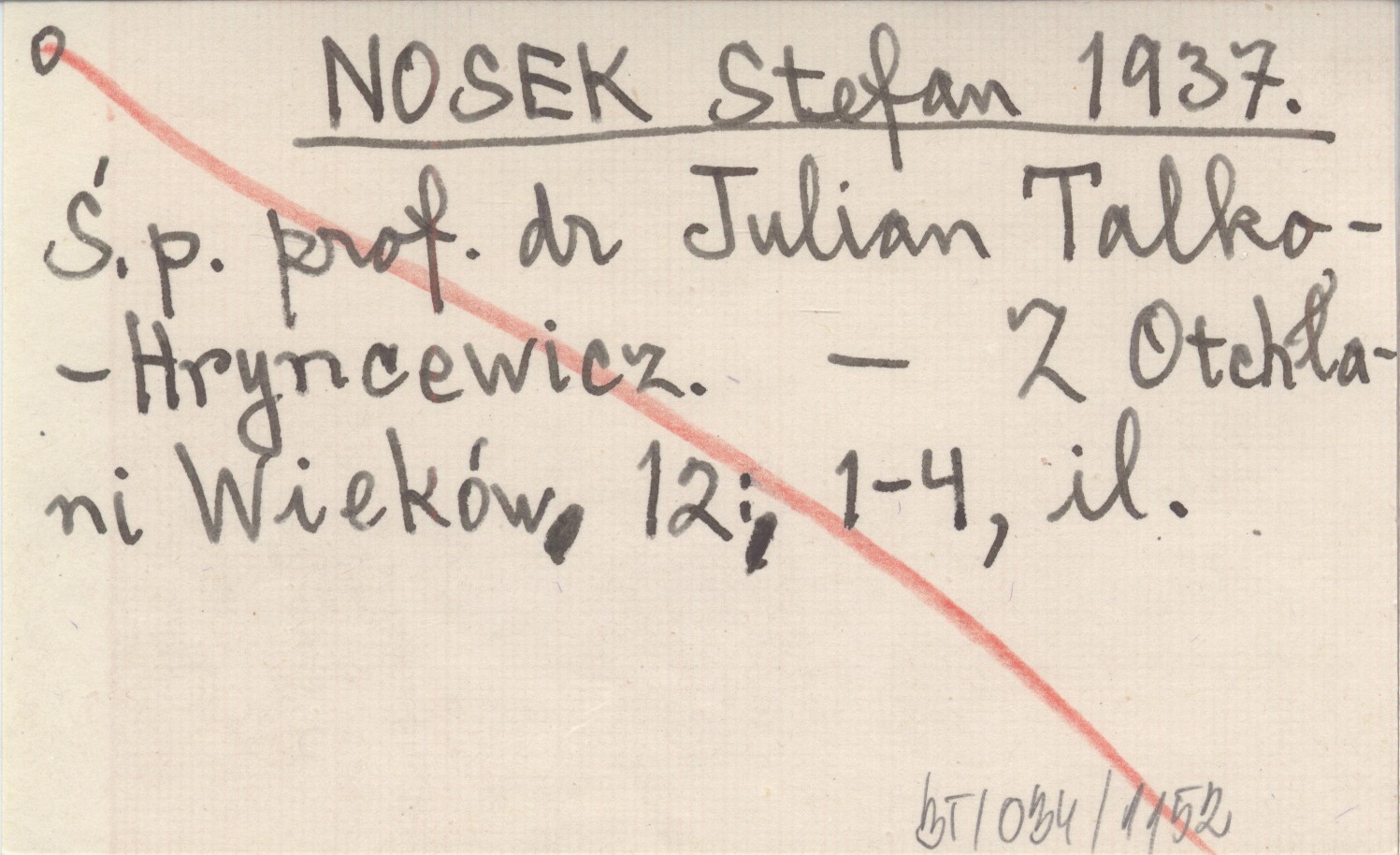 NOSEK Stefan 1937 Ś. p. prof. dr Julian Talko-Hryncewicz.