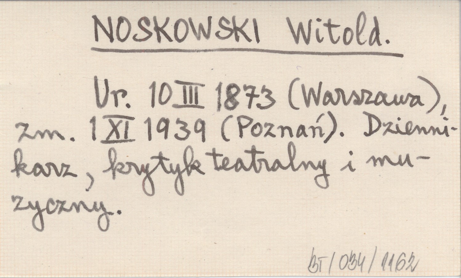Ur. 10 III 1873 (Warszawa), zm. 1 XI 1939 (Poznań). Dziennikarz, krytyk teatralny i muzyczny.
