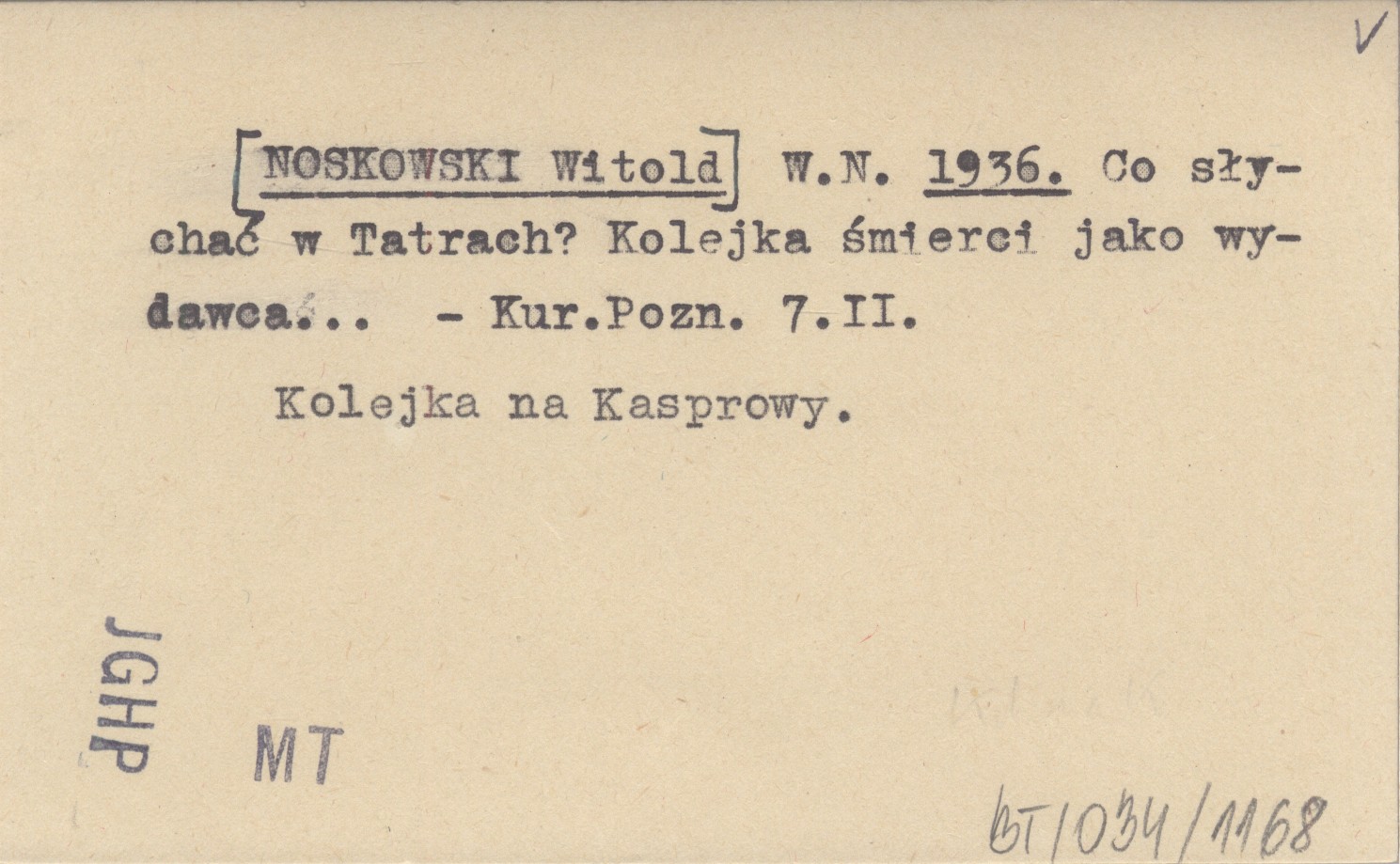W.N. [NOSKOWSKI Witold] 1936 Co słychać w Tatrach? Kolejka śmierci jako wydawca...