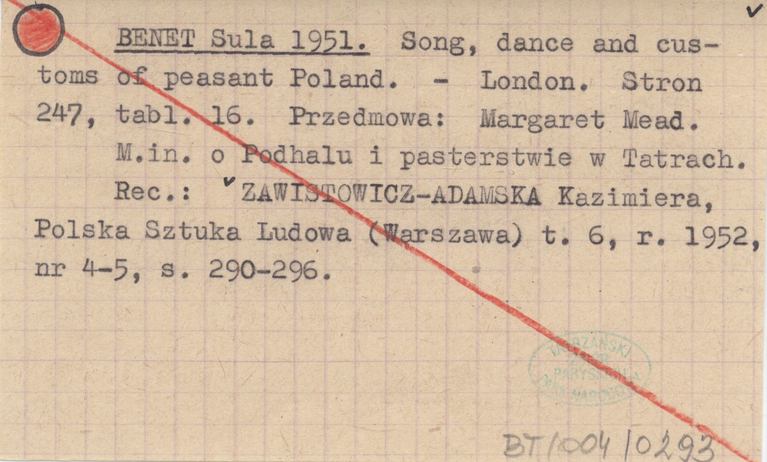 BENET Sula 1951 Song, dance and customs of peasant Poland.