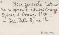 Nota generała Latinika w sprawie administracyi Spisza i Orawy. 1920...
