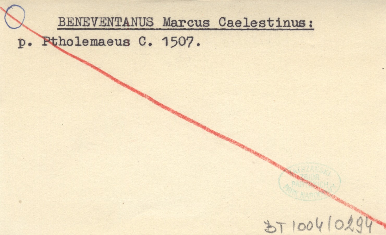 Ptholemaeus C. BENEVENTANUS Marcus Caelestinus 1507