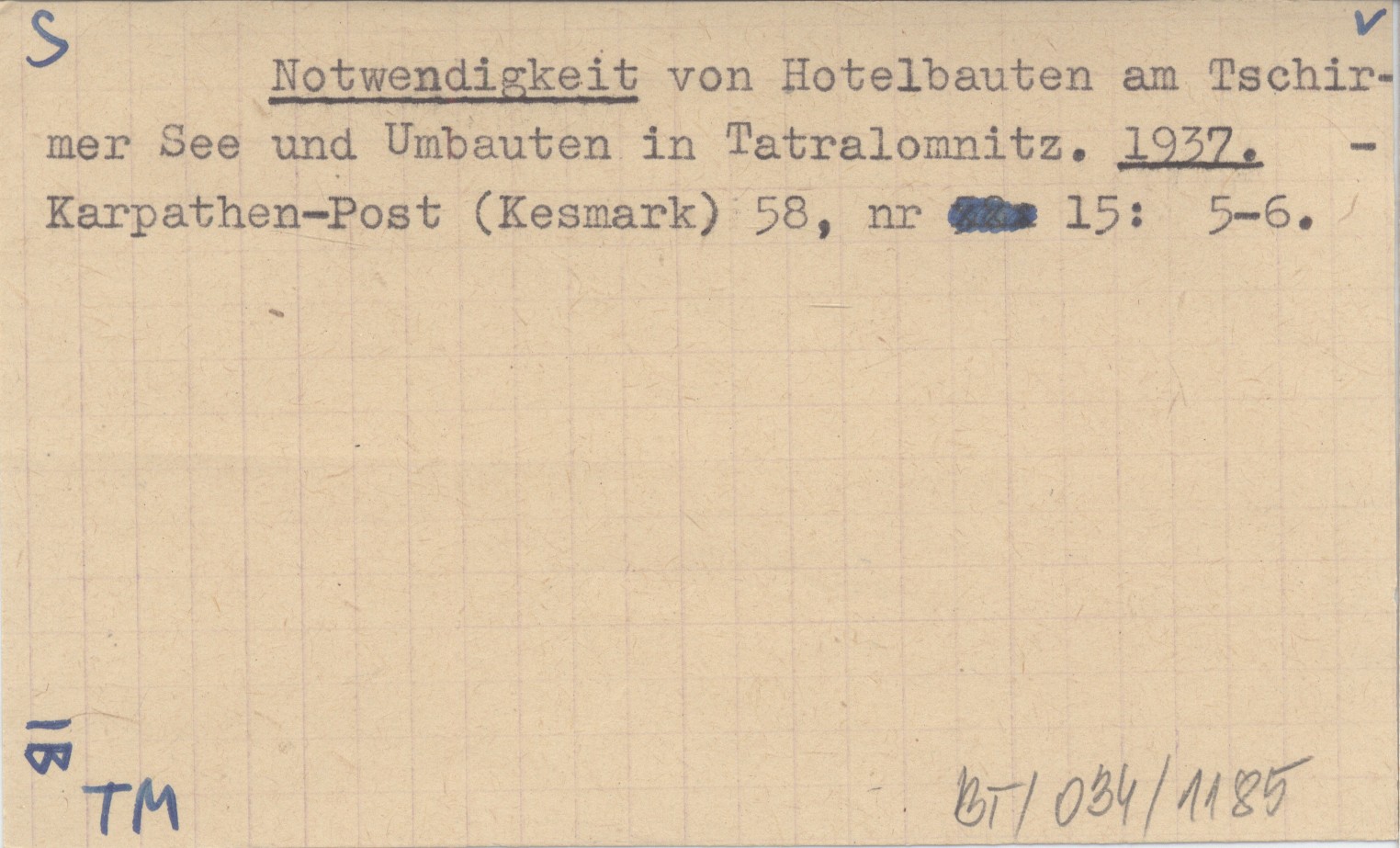Notwendigkeit von Hotelbauten am Tschirmer See und Umbauten in Tatralomnitz. 1937
