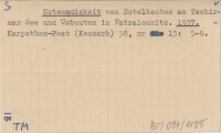 Notwendigkeit von Hotelbauten am Tschirmer See und Umbauten in Tatralomnitz. 1937