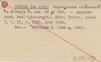 NISTOR Ion 1939 Migraţiunea românească în Polonia în sec. XV şi XVI.