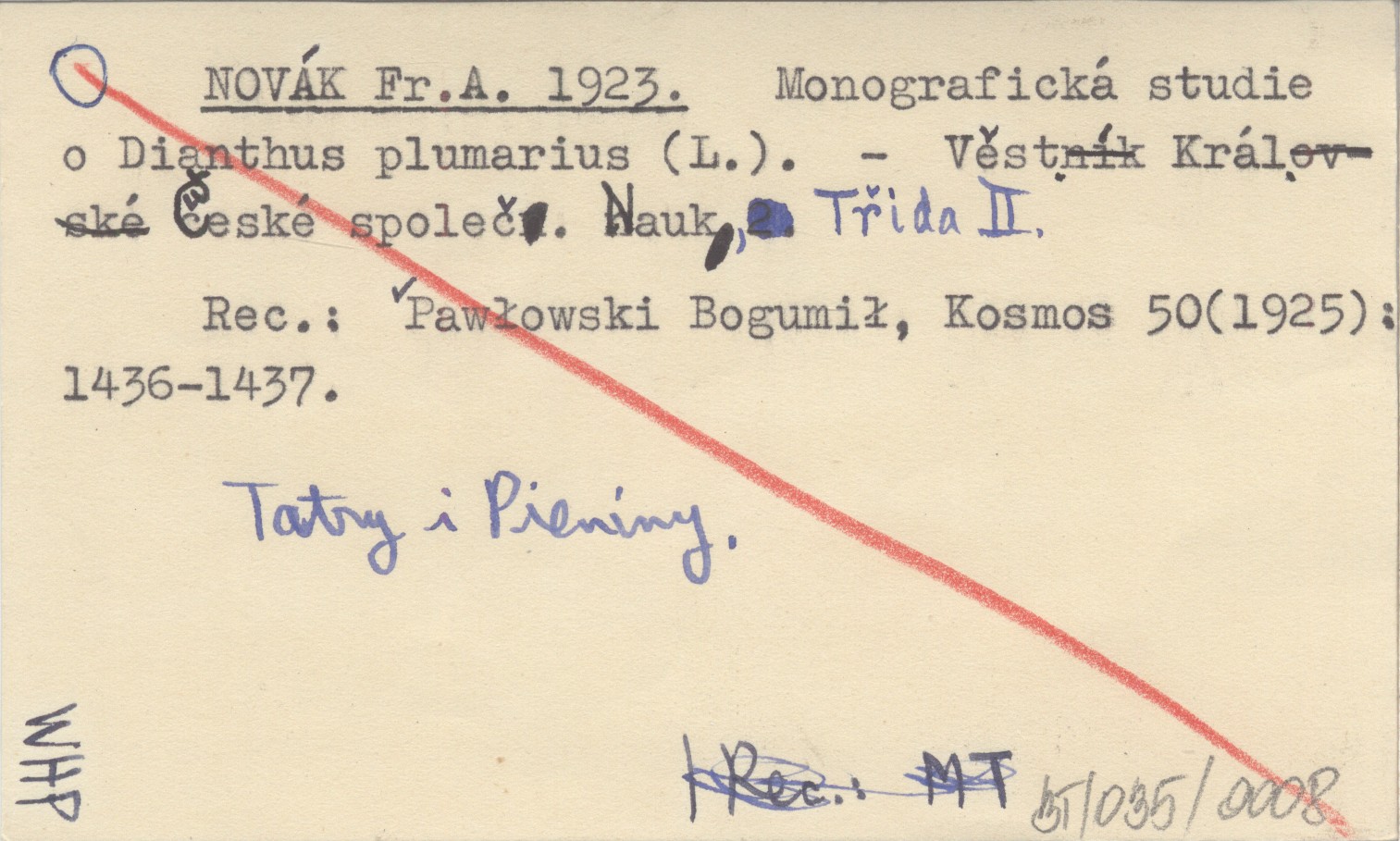 Věstník Královské České společn. Nauk, Třida 2. Tary i Pieniny. REC: PAWŁOWSKI Bogumił, Kosmos 50 (1925): 1436-1437.