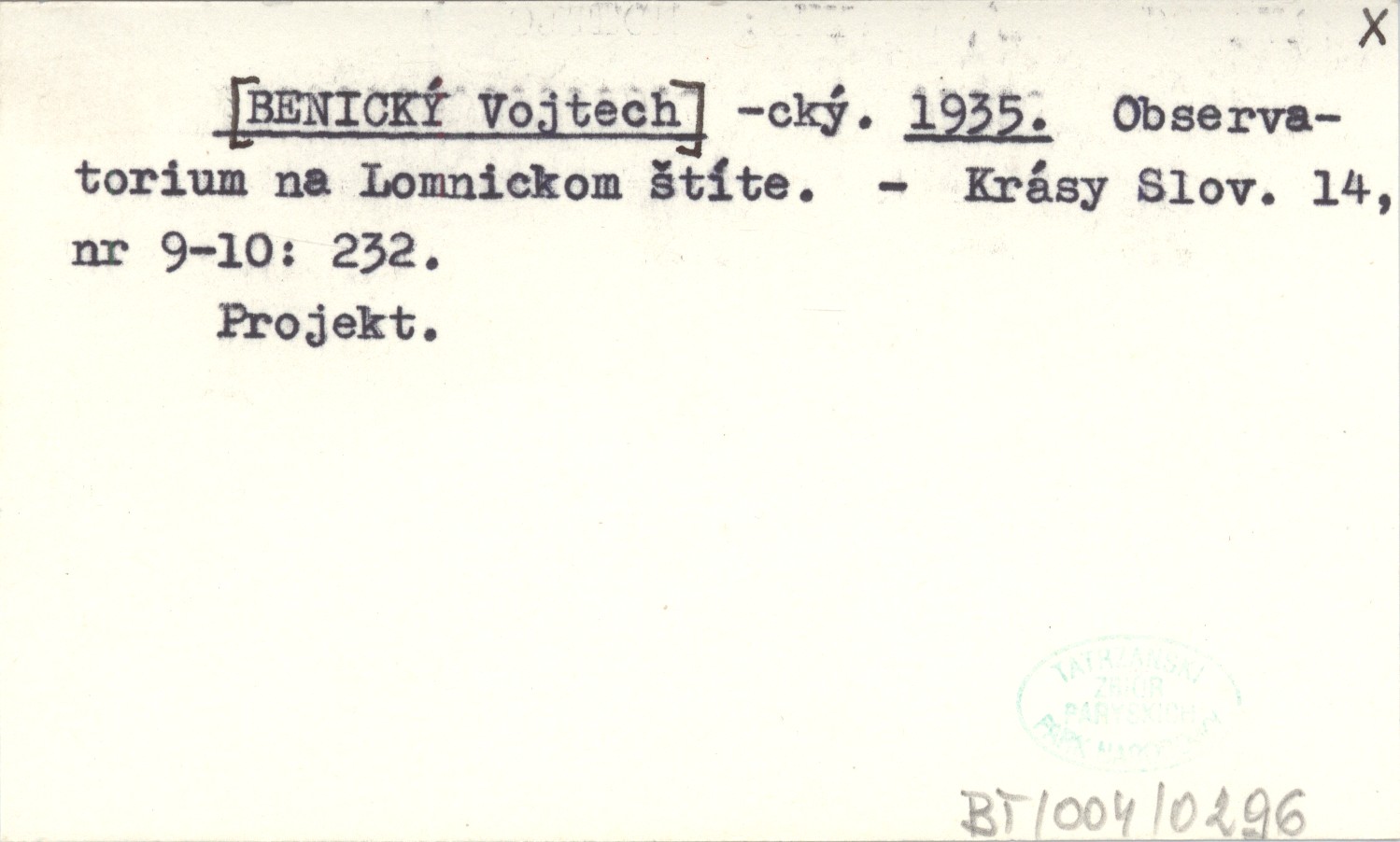 -cký. [BENICKÝ Vojtech] 1935 Observatorium na Lomnickom štíte.