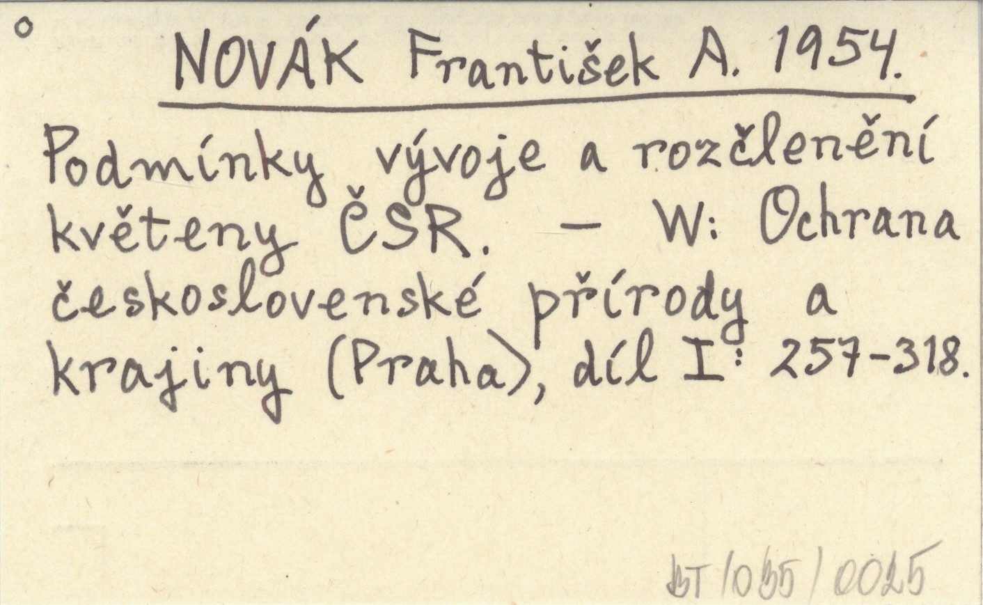 NOVÁK Frantiąek A. 1954 Podmínky vývoje a rozčlenění květeny ČSR.