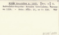 NOVÁK František A. 1957 Z. Radwańska-Paryska: Mozaika tatrzańska. Warszawa 1956.