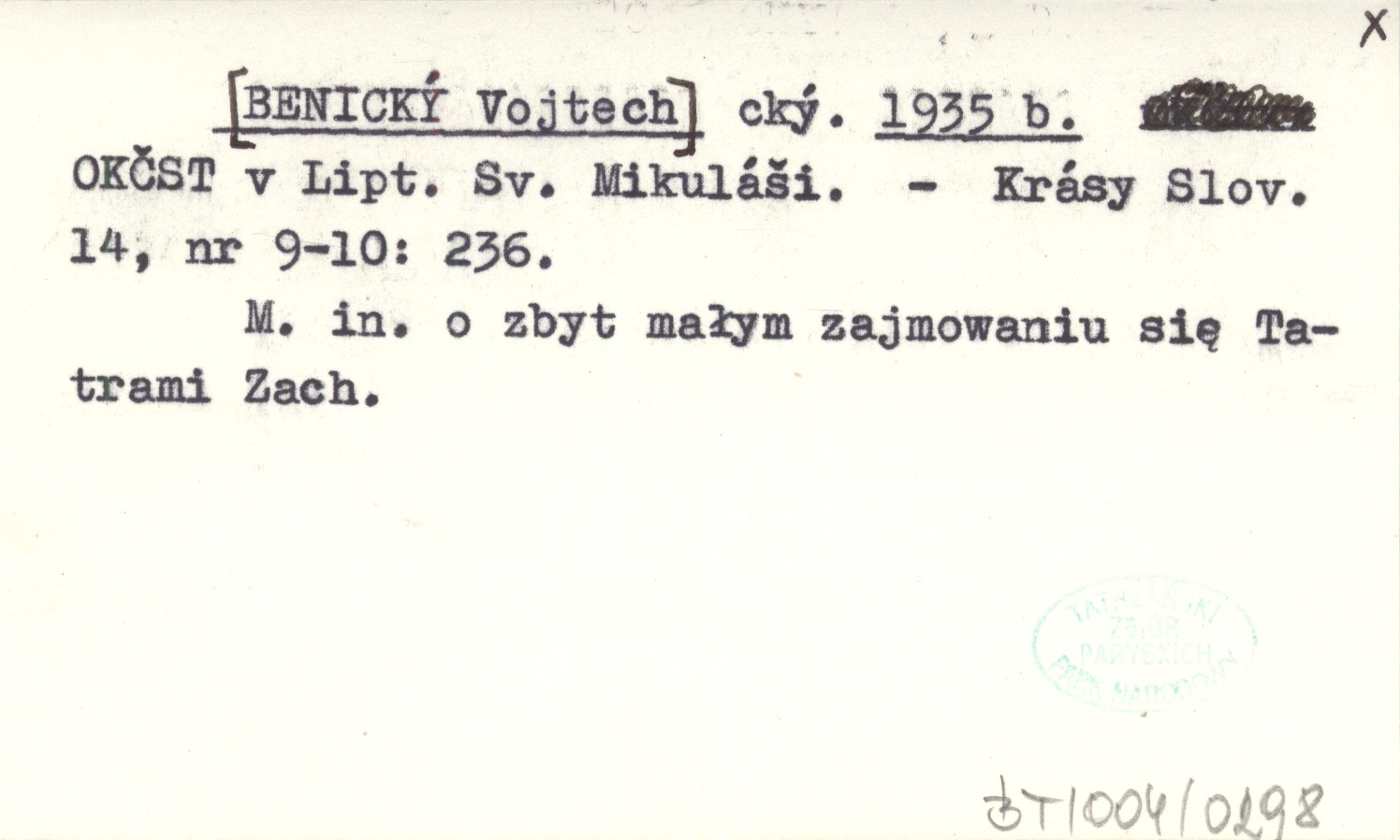 cký. [BENICKÝ Vojtech] 1935 b OKČST v Lipt. Sv. Mikuláši.