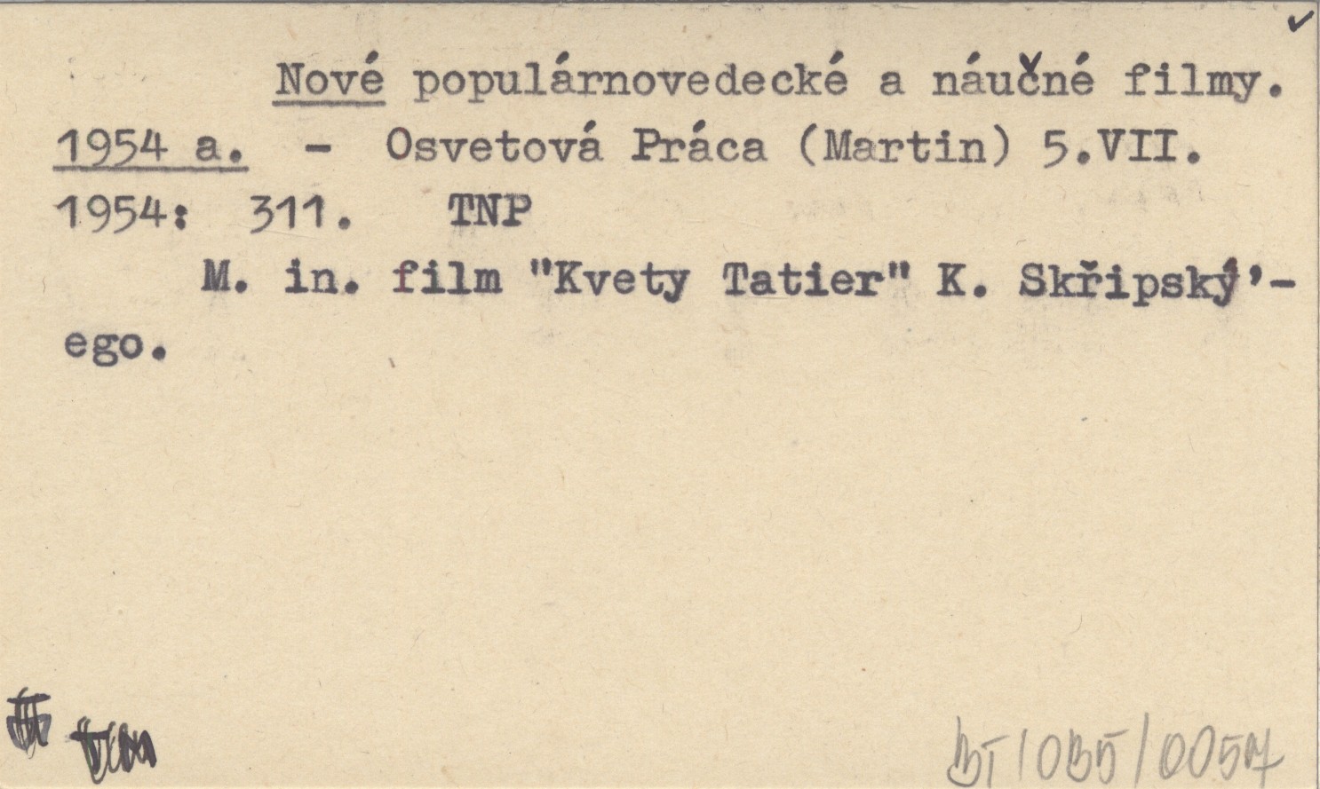 Osvetová Práca (Martin) , 5 VII 1954: 311. M.in. film "Kvety Tatier" K. Skřipský'ego.