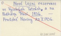 Nové lesni reservace ve Vysokých Tatrách a na Podkarp. Rusi. 1936