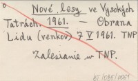Nové lesy v Tatrách. 1961