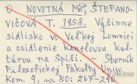 NOVOTNÁ Maria ŠTEFANO-VIČOVÁ, T. ; 1958 Výšinne sidlisko vo Veľkej Lomnici a osidlenie kanelovou kultúrou na Spiši.