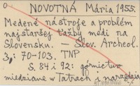 NOVOTNÁ Mária 1955 Medené nástroje a problém najstaršej ťažby medi na Slovensku.