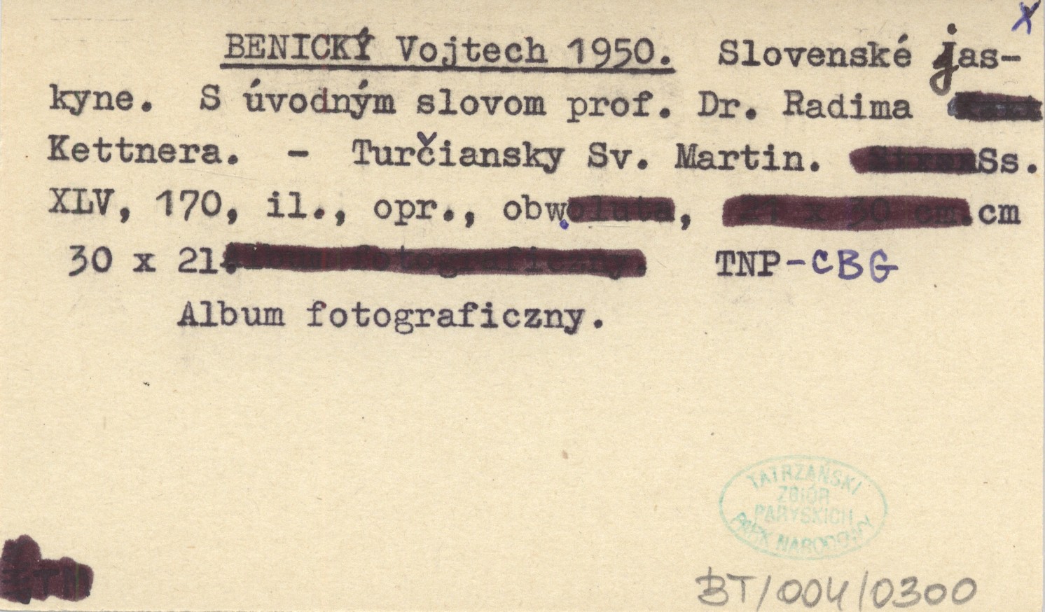 BENICKĘ Vojtech 1950 Slovenské jaskyne. S úvodnęm slovom prof. Dr. Radima Kettnera.