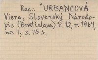 Bratislava , 279 s. REC: URBANCOVÁ Viera, Slovenský Národopis (Bratislava) t. 12, r. 1964, nr 1: 153.