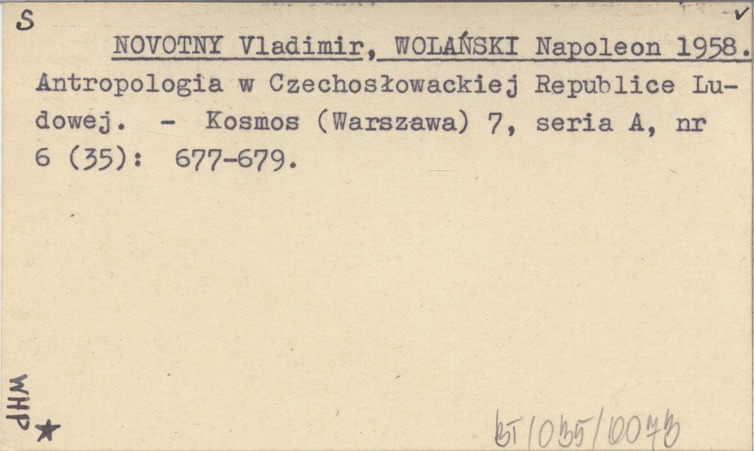NOVOTNY Vladimir WOLAŃSKI, Napoleon. ; 1958 Antropologia w Czechosłowackiej Republice Ludowej.