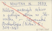 NOVOTNA N. 1957 Nálezy medených sekier s jedným ostrim zo Slovenska.