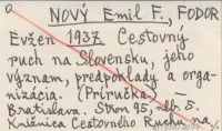NOVÝ Emil F. FODOR, Evľen. ; 1937 Cestovný ruch na Slovensku, jeho význam, predpoklady a organizácia. (Príručka).