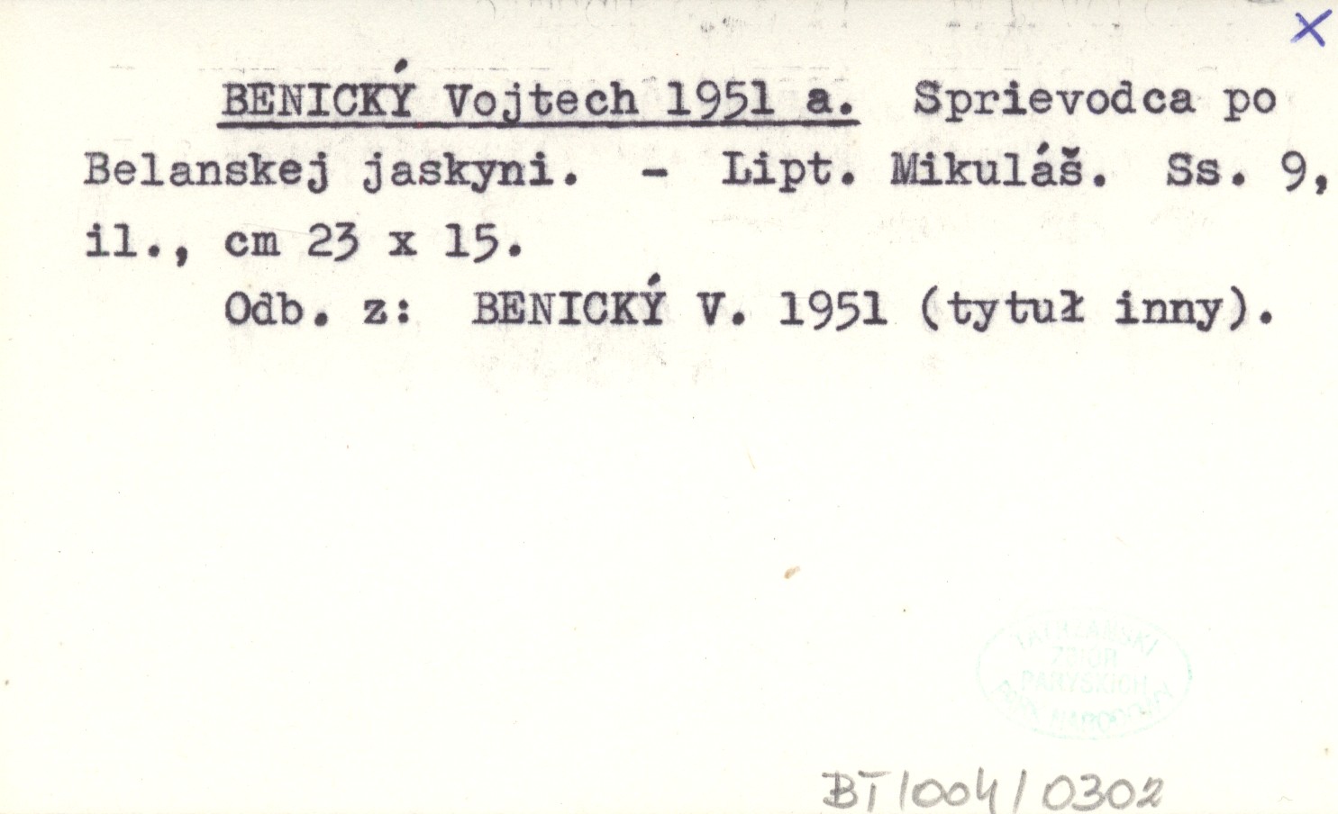 BENICKĘ Vojtech 1951 a Sprievodca po Belanskej jaskyni.