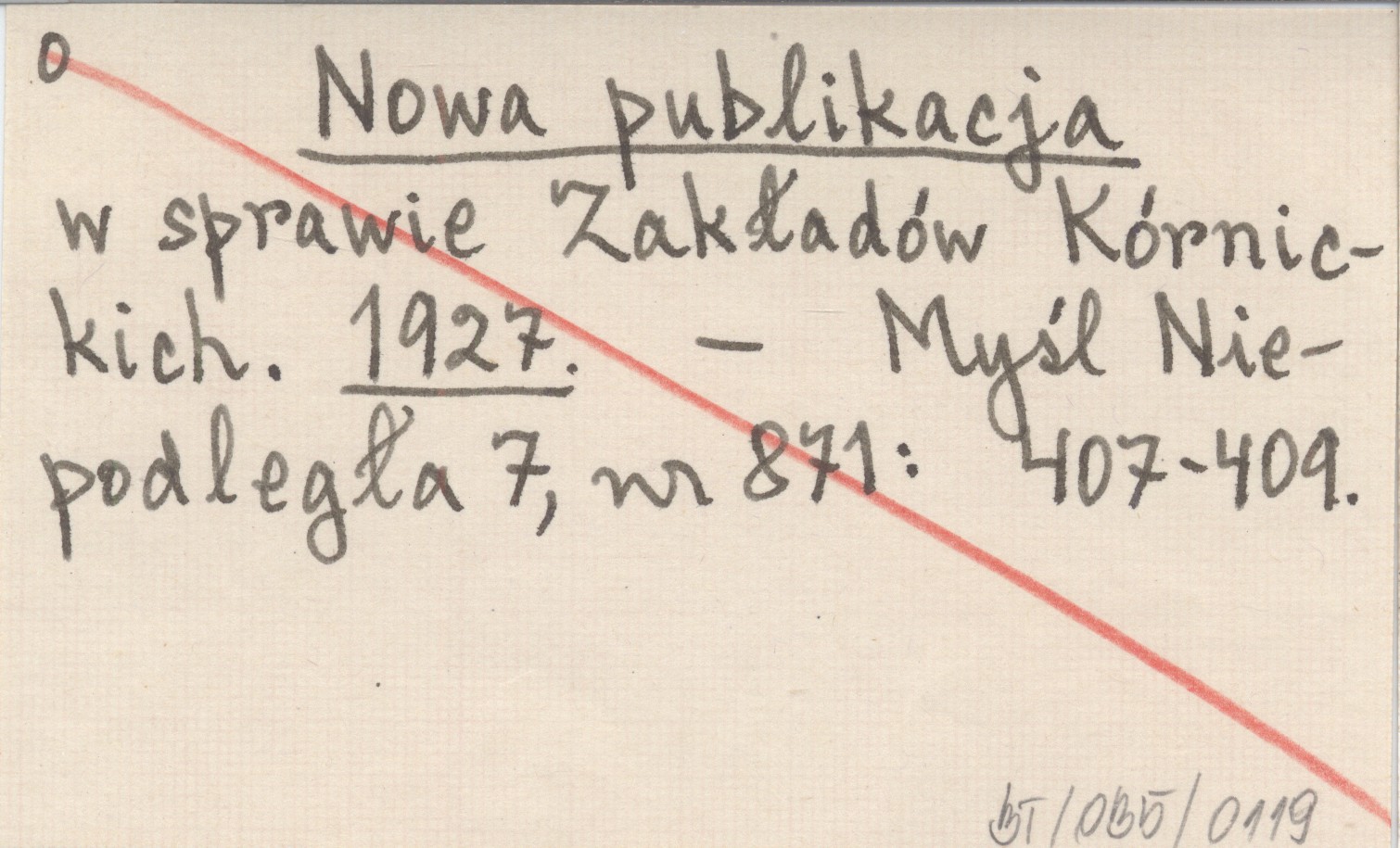 Nowa publikacja w sprawie Zakładów Kórnickich. 1927