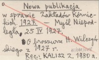 Nowa publikacja w sprawie Zakładów Kórnickich. 1927