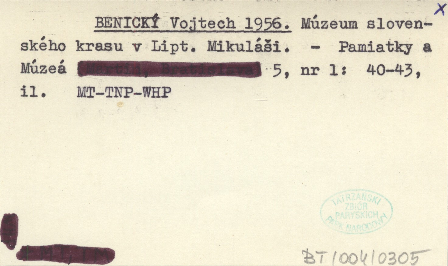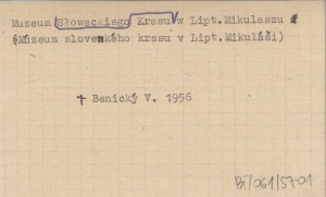 BENICKÝ Vojtech 1956 Múzeum slovenského krasu v Lipt. Mikuláši.