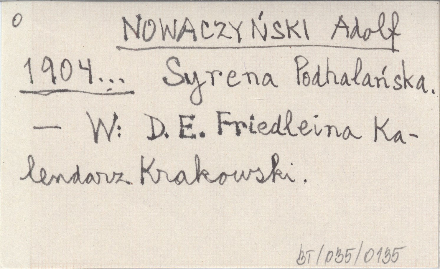 D. E. Friedleina Kalendarz Krakowski.