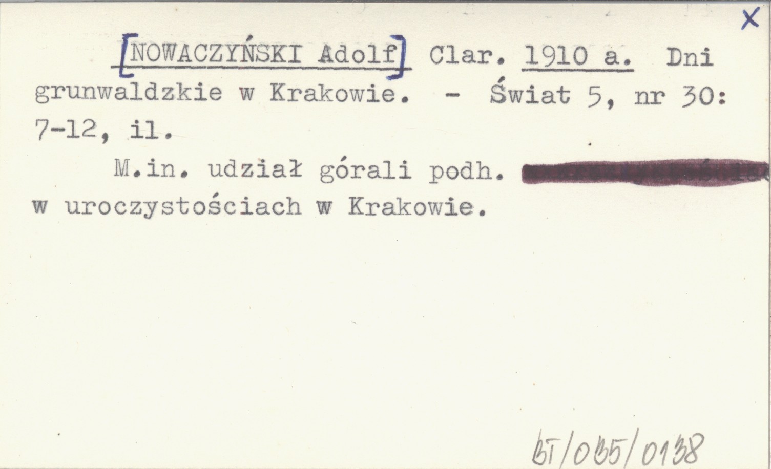 Clar. [NOWACZYŃSKI Adolf] 1910 a Dni grunwaldzkie w Krakowie.