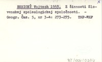 BENICKÝ Vojtech 1953 Z činnosti Slovenskej speleologickej spoločnosti.