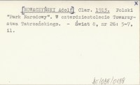 Clar. [NOWACZYŃSKI Adolf] 1913 Polski "Park Narodowy". W czterdziestolecie Towarzystwa Tatrzańskiego.